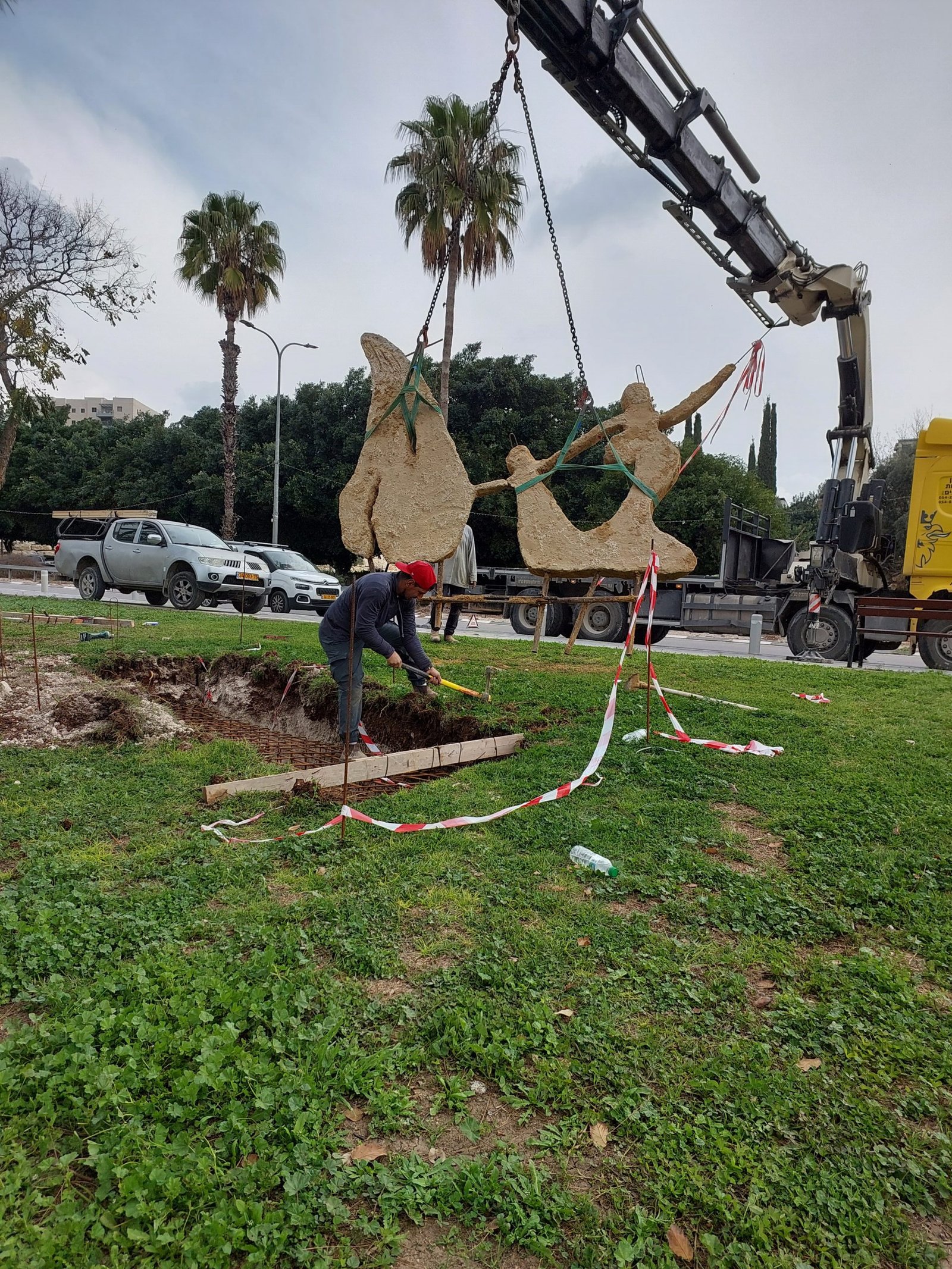 כל היצירה נוצרה בתוך אמבטיית חול עצומה בטכניקת יציקת חול על מנת לבטא את התקומה מתוך החול, את הקדושה של המעשה בתוך עולם של חולין.