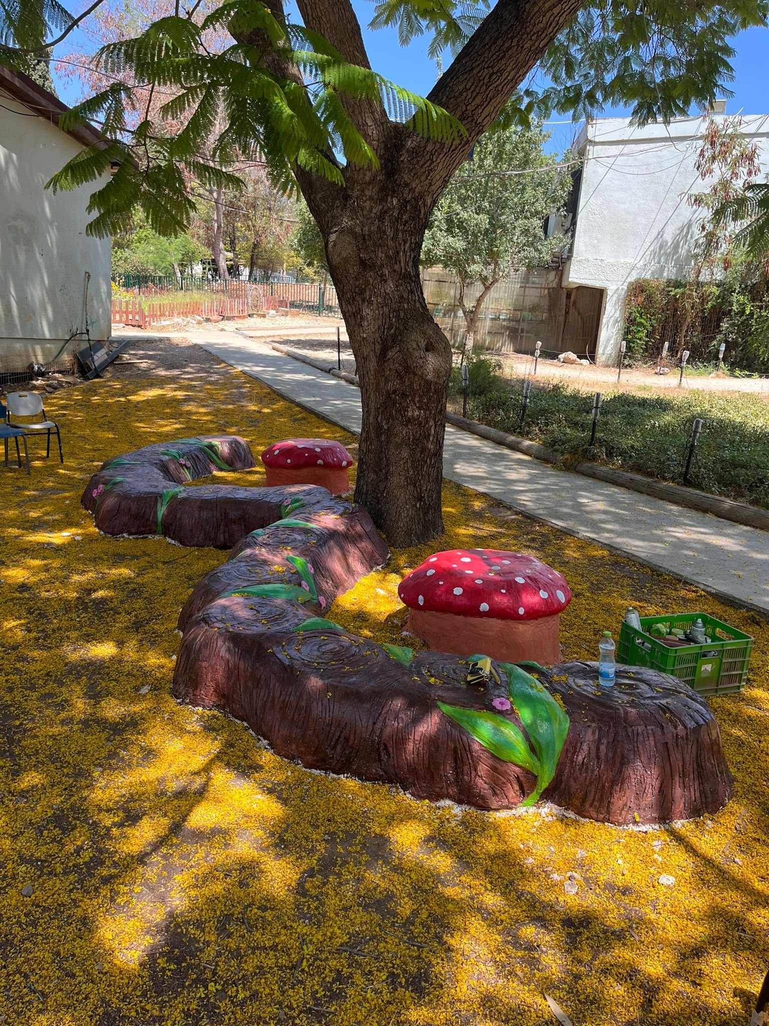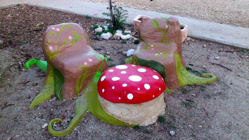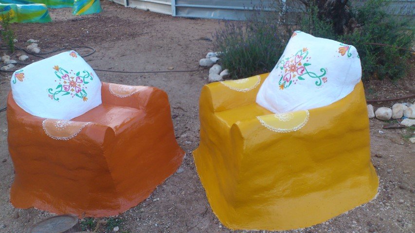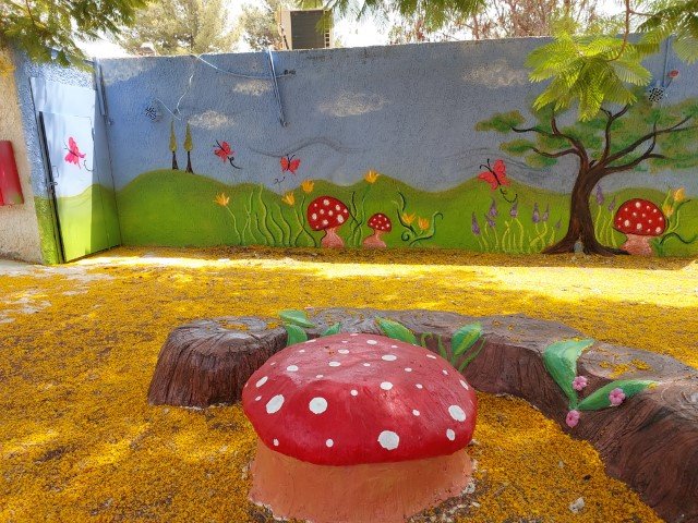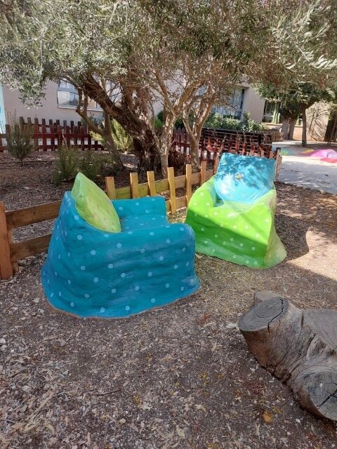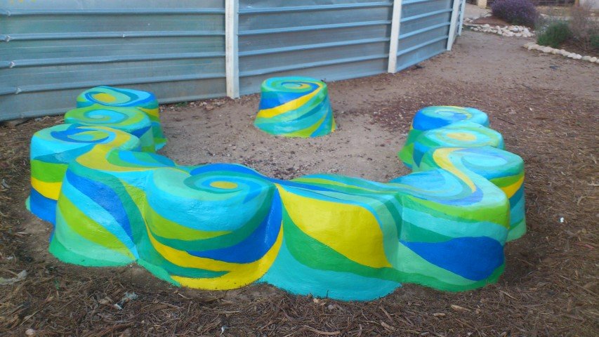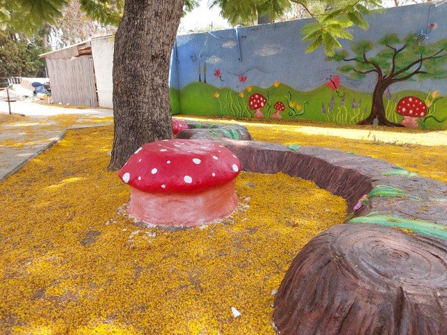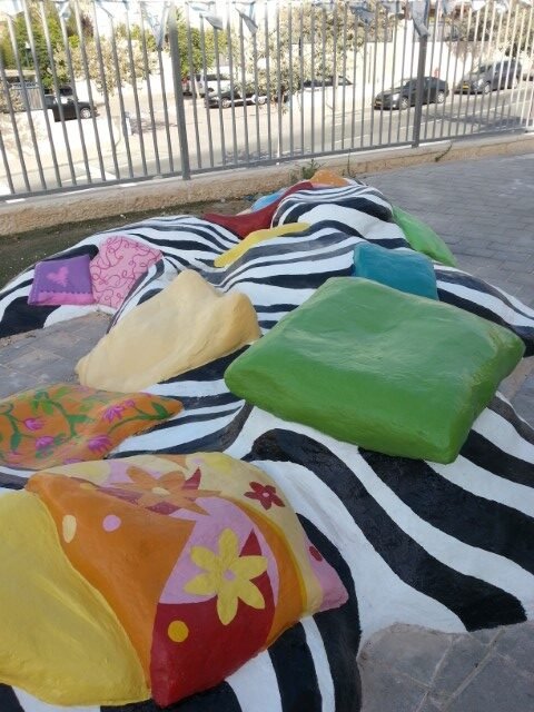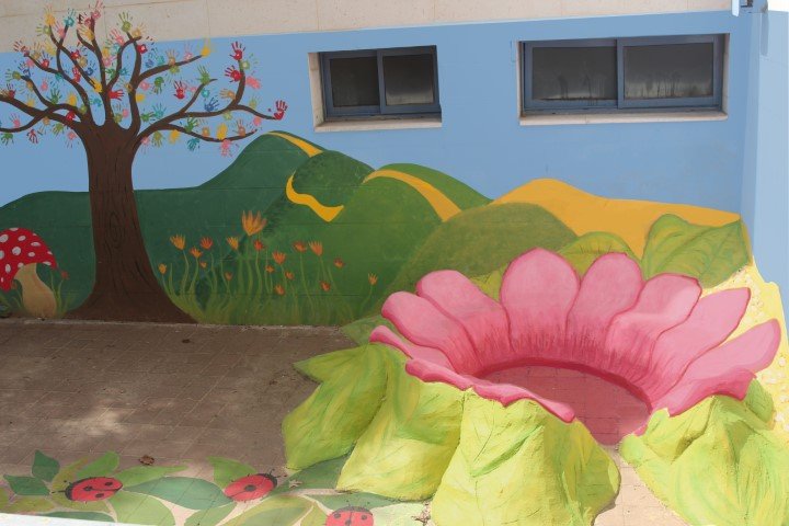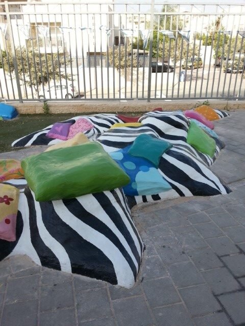בבית ספר סמילנסקי ברחובות, יצרנו פינת חברות בצורת פרח מלבלב שמיקמנו אותו דווקא בשטח מת ולא מעניין שהילדים נמנעו מלהגיע אליו.  הפרח מפוסל בבטון והוא בנוי על קונסטרוקציה של כסאות ישנים, סדוקים ובלויים שהיו בדרכם לאשפה.